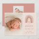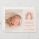 Beautiful and heartfelt birth announcement for your rainbow baby features a hand drawn rainbow in boho inspired earth tone colours, with "our rainbow" and baby's name, birth date, and birth stats beneath. Personalise with a photo on each side, and add a personal message to the back. Perfect for little ones welcomed after a loss.