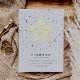A real gold foil star with 'our shining star' in white calligraphy style font on it, plus a celestial themed moon and stars pattern background.