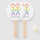This paper hand fan features a beautiful and practical design for your wedding ceremony or reception. The graphic depicts two men, in the form of elegant stick figures, holding hands. The figures are coloured in a beautiful rainbow, symbolising love and diversity. This fan is a wonderful way to bring a cohesive and meaningful touch to your ceremony, helping your guests stay cool while celebrating your union.