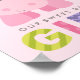 Nursery art print poster features an adorable pink hippo with flower and colourful patterned lettering. Includes pastel pink background colour and "our sweet baby girl" text.