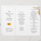 Tri-fold wedding program template with a fall theme. Orange and yellow Maple leaves and tree branches decorate this custom program to fold in thirds after purchase and will open accordion style for guests to read. All text is in template form to be replaced with your ceremony order and is an example only. Reverse will have no printing, colour or images - ONE SIDE PRINTING. Shown on the heaviest - linen- paper which may be changed.