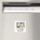 It was a bit smaller than expected, but I was too excited to check dimensions. The product itself send well printed though the grey text is a bit paint. Magnet worked perfectly on my fridge.