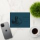 A beautiful simplistic wedding invitation Save the Date postcard in real silver foil on a blue background.