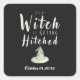 Celebrate your spooky bridal party with this “Our Witch Is Getting Hitched” sticker featuring bold white text on a black background and a customisable line for names, dates, or special messages. Perfect for Halloween bridal showers, bachelorette parties, or witch-themed events, this sticker adds a fun and festive touch to favours, invitations, or gift bags.