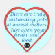 This pet lover's design promotes getting pets from shelters and rescue with "There are outstanding pets at the animal shelter, just open your heart and look.". This pet adoption design is available on t-shirts, stickers, mugs and more. Be sure to look for the "change shirt style link" if you want a different colour or style of apparel.