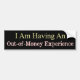 A fun and funny bumper sticker for anyone with the text I Am Having An Out-Of-Money Experience.