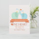 We know your happy and want to share your wonderful news... do it in style with this adorable pregnancy announcement. It features two elephants with a heart between them, a decorative ribbon and one more heart under the word "one".