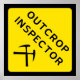 Outcrop Inspector - geology humour poster - yellow diamond warning sign style design with crossed rock hammers.