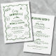 The front showcases a playful doodle border filled with outdoor and adventure themed illustrations, including mountains, a tent, sleeping bag, backpack, campfire, compass, lantern, map, hiking boots, and marshmallows on a stick for s'mores. At the centre, the text is elegantly displayed in a mix of hand drawn script and bold font, creating a modern yet whimsical vibe. Forest green illustrations and fonts pop against the crisp white background, but all colours can be customised to suit your theme.
