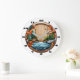 This wall clock is a perfect choice for anyone who loves fishing or appreciates lakeside tranquility in their home decor. The clock face features a charming fishing motif, with intricate illustrations of fishing rods, lures, and freshwater fish set against a soft, rustic background. Subtle details like mountains, pine trees, and rippling water evoke the serenity of a favorite fishing spot.