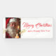 Select from indoor or outdoor, with or without grommets. Shown in white with red text "Merry Christmas" and "Happy New Year" in a fancy script and coordinating text with a photo of Santa.