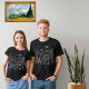 Are you ready to embark on an outdoor journey surrounded by the beauty of nature? Our rustic inspired T-shirt transports you to a bygone era of adventure and exploration! This design features a campfire in the outdoors, surrounded by pine trees, a deer, mountains and an aeroplane flying in a starry sky.