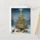 Outdoor Christmas Tree with Kitten and Presents Postcard