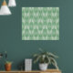 A tribal, boho design in a green, geometric pattern.