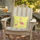 Outdoor throw pillow is shown in a solid colour of yellow with a cute flamingo print.
