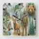 This square clock features a rich tapestry of outdoor life, showcasing a hunter and fisherman alongside majestic bear and deer in a serene forest setting. With elements like a canoe and ducks, it captures the essence of adventure and exploration in the wilderness. Perfect for nature lovers and outdoor enthusiasts, enhancing any rustic decor.