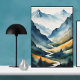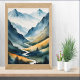 Immerse yourself in the breathtaking beauty of the great outdoors with this stunning poster featuring majestic mountains in all their glory. The snow-capped peaks rise high against the backdrop of a clear blue sky, inviting you to explore and discover the wonders of nature. The lush forests at the base of the mountains add a touch of serenity to the scene, making it the perfect escape for anyone seeking tranquillity and adventure.