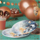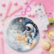 Outer space astronaut baby shower editable template plates, cute watercolor baby in a space suit flying in space personalised tableware template party plates