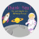 This modern outerspace astronaut girl birthday party sticker with a rocket ship and astronaut on a dark blue star filled sky background is the perfect for any birthday party or special event in style. Personalise with your own special text, and use it for the party or event of your choice. Some Graphics by Prettygrafik design at store etsy.com/shop/Prettygrafikdesign