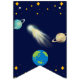 Decorate your party with a cosmic touch using this outer space birthday bunting banner! Featuring a dark blue starry background, glowing galaxy centre, colourful planets, Earth, a shooting meteorite, and an astronaut riding a rocket ship, this banner brings the universe right to your celebration. Perfect for hanging above tables, dessert stations, or party entrances, it coordinates beautifully with our matching invitations, thank you cards, plates, napkins, posters, balloons, favour boxes, stickers, coasters, and more for a fully themed space birthday party.