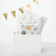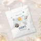 Celebrate your child's special milestone with this magical outer space themed birthday favour bag. Featuring imaginary planets, moon and stars in navy and gold colorway. These Outer Space 1st Birthday Galaxy Sun Moon Stars and Planets Favour Bags are perfect for a simple birthday party. The modern whimsical design showcases a navy-blue watercolor background adorned with a yellow vibrant sun, smiling grey moon, pastel-coloured planets, and gold scattered glow stars.