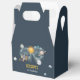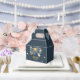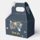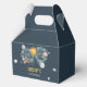 Celebrate your child's special milestone with this magical outer space themed birthday favour box. Featuring imaginary planets, moon and stars in navy and gold colorway. These Outer Space Birthday Galaxy Sun Moon Stars and Planets Favour Boxes are perfect for a simple birthday party. The modern whimsical design showcases a navy-blue watercolor background adorned with a yellow vibrant sun, smiling grey moon, pastel-coloured planets, and gold scattered glow stars.