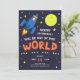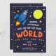 Celebrate your little one's birthday in style with this space-themed birthday invitation! Featuring a rocket ship surrounded by stars and the moon, it's easy to customise the details with information for your own astronaut's party. Add your little one's picture to the back inside a spacesuit for a truly out of this world invitation!
