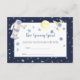 Outer space Guessing Count Game with blue stars on midnight blue background. Each card has a spaceman, spacecraft and pale yellow moon on white background. Enclose in the envelope with matching invitations.