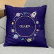 This playful throw pillow features a customisable centre for a name, encircled by a playful rocket ship in orbit. Twinkling stars, vibrant planets, and glowing comets complete this whimsical design.