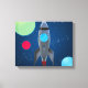 Dark night outer space sky with colourful and bright planets and white stars, with a silver rocket ship flying through the sky. Great for a little boys room for the guy who loves space and travel. All Designs Copyright © 2012 www.CuteComfy.com