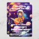 Outerspace Planets Blue Boy First Birthday Invitation.
