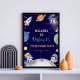 Adorable outer space themed design featuring a watercolor design with rockets, planets, stars and cute astronaut woodland animals a racoon and a bear this cosmic design adds a playful,imaginative touch to your celebration.