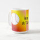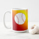 A fun ball game design. A white baseball with red stitching on a yellow and orange shaded background. The saying 'big hitter' can be changed to something else as desired.