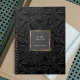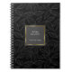 Outline Leaves Pattern | Black Gold Frame Monogram Notebook