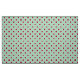 Stylish geometric fabric features dark red polka dots outlined in white on a light green background. The mint green and maroon colours create a playful Christmas pattern that strays from the standard colours.