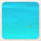 Coaster with a man paddling in an outrigger canoe boat in the bright blue lagoon of the tropical Island Bora Bora near Tahiti in the Pacific archipelago French Polynesia.