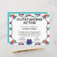 Celebrate exceptional student talent with the "End of Year Outstanding Actor Student Recognition Award." This elegant award is perfect for recognising a student's dedication and outstanding performance in drama and theatre. Made with high-quality materials, it serves as a lasting memento of their hard work and achievements. Ideal for school ceremonies and drama clubs, this award inspires continued excellence in the performing arts.