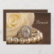 Keep celebrating the newlywed bride and groom the morning after their marriage ceremony with the classy Oval Diamond Ring Post and White Rose Wedding Brunch Invitation. This elegant custom After Wedding Breakfast or Luncheon Invite features a floral photograph of an oval diamond engagement ring, white pearl necklace and white rose flower blossom with a brown silk background.