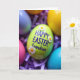 Designed with a close-up view of glossy, egg-shaped ornaments, the scene is lit with a gentle glow that makes each surface shine. Near the center sits a lime-green oval that draws the eye, decorated with small raised white blossoms with yellow centers, like tiny flowers offered with affection 🌷. Across the green surface, the words “HAPPY EASTER Grandson” appear in deep violet, slanting cursive-style lettering, placed prominently so it reads at a glance. Around it, softly blurred egg shapes in lavender, canary yellow, rose pink, and turquoise lean into the frame, as if gathered close in a friendly circle 🐰. Their curved edges overlap slightly, giving the arrangement a cozy, together-at-the-table feel without showing any faces. Underneath, a nest of finely shredded, crinkled filler in rich purple adds texture and depth, contrasting with the smooth shine above. The purple strands spread outward beneath the eggs, with bits peeking between the pastel shapes and catching the light.