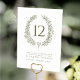 Elegant oval leave foliage wreath muted olive green on white wedding table number. Edit this card with your own names and wedding details and table number. You must change the number to each table number that you need and add them to your cart, one at a time. Quantity discounts may apply once you add all the items to your cart. Other matching items are available. Original line art hand drawn oval leaf wreath and design by Sarah Trett exclusively for www.mylittleedenweddings.com