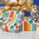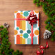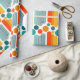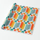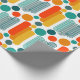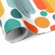 This wrapping paper has a mid-century modern design of ovals and circles in orange, gold, teal, and turquoise on a field of white. Want the same design with different colours? Message me.