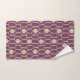 This towel set has an art deco design of ovals, rectangles, and circles in horizontal lines repeating in rows.