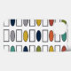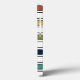 This phone case has a mid-century modern design of repeating rectangles and ovals in retro colours.