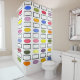 This shower curtain has a mid-century modern design of repeating rectangles and ovals in flower garden colours.