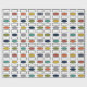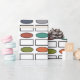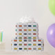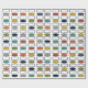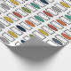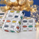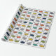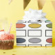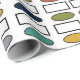 This wrapping paper has a mid-century modern design of repeating rectangles and ovals in retro colours.