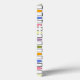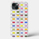 This phone case has a mid-century modern design of repeating rectangles and ovals in flower garden colours.
