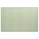 This fabric has a mid-century modern design of cream ovals and black starbursts on a field of sea green.