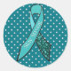 Ovarian Cancer Awareness Ribbon sticker teal with polka dots.