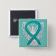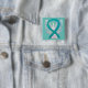Ovarian cancer awareness cause uses a teal green ribbon. The awareness pin features the painting of a teal awareness ribbon angel on a custom button pendant. The pin states "Ovarian Cancer Awareness" but can be updated with a personal awareness message. Teal awareness angel ribbon art lapel pins or buttons can be customised with personalised messages to make great cause buttons for fundraiser pendants, awareness pin gifts, or other special pendant events or awareness lapel pin for the cause's occasions.