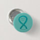 Ovarian cancer awareness cause uses a teal green ribbon. The awareness pin features the painting of a teal awareness ribbon on a custom button pendant. The pin states "Ovarian Cancer Awareness" but can be updated with a personal awareness message. Teal awareness ribbon art lapel pins or buttons can be customised with personalised messages to make great cause buttons for fundraiser pendants, awareness pin gifts, or other special pendant events or awareness lapel pin for the cause's occasions.
